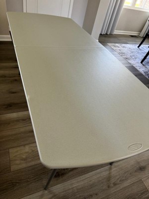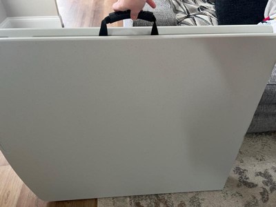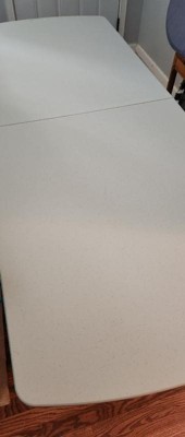 [This review was collected as part of a promotion.] I received this table and it’s very nice, easy to assemble, its folds in half and easy to store as well. It’s not heavy to move around as needed and I really like the white color. It’s easy to wipe down and keep clean too.
