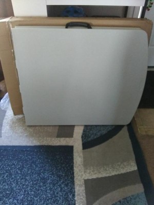 [This review was collected as part of a promotion.] Easy to set up has a carrying handle to use when wanting to carry it this table is white and big I'll use it for craft fairs which will be good to use even in events