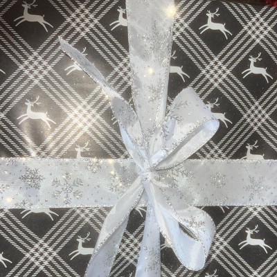 30' Christmas Fabric Ribbon White Satin Silver Snowflakes - Wondershop™
