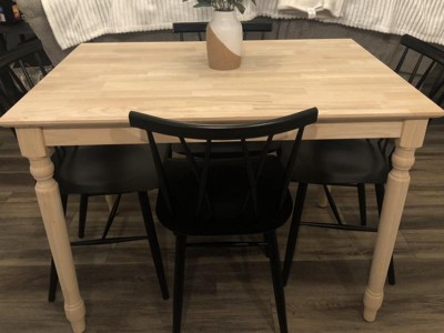 I wanted a small unfinished breakfast table that I can put a simple clear coat on and this one is perfect! I love the turned legs and easily put them on myself!