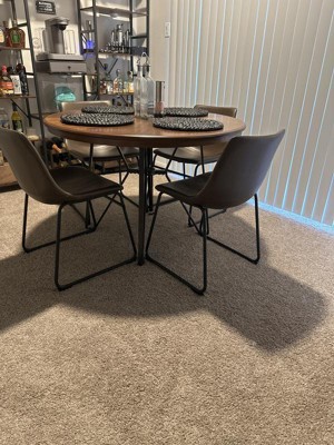 Loved this table for our small kitchen nook! The finish complimented our hardwood floors in the adjacent room. We paired the table with the charterton chairs that have a dark wood finish and loved the combination of the two with our thrifted white bench!