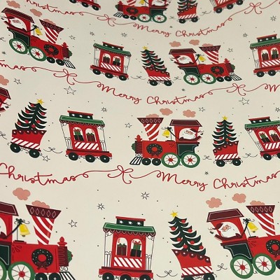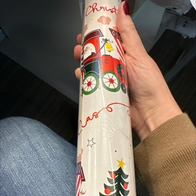 Wrap your holiday gifts in the joyful spirit of the festive season with this Christmas Nostalgic Noel Wrap Rolls from Wondershop™. This Christmas wrap features a playful train print on a beige backdrop, along with "Merry Christmas" text, for a happy, jolly vibe. Made of paper, this gift wrap roll provides enough material to cover 25 square feet, making it ideal for wrapping all the presents on your holiday list.