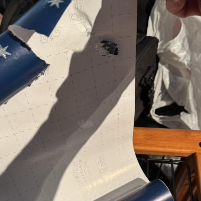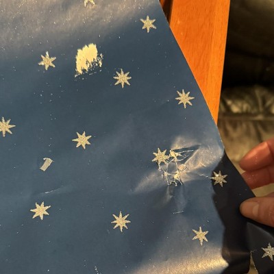 Tears so easily. I can’t even roll it back up after use without it tearing. Using any basic wrapping tape and it takes the blue print right off.