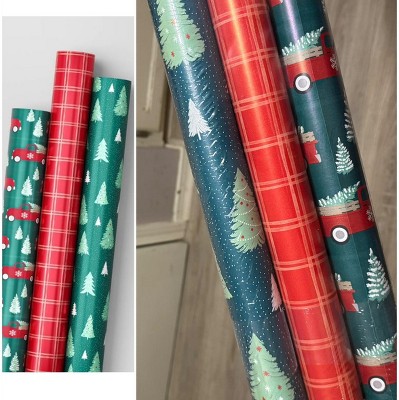 30" 3pk 180 sq ft Christmas Wrap Pack Trucks/Plaid/Trees - Wondershop™