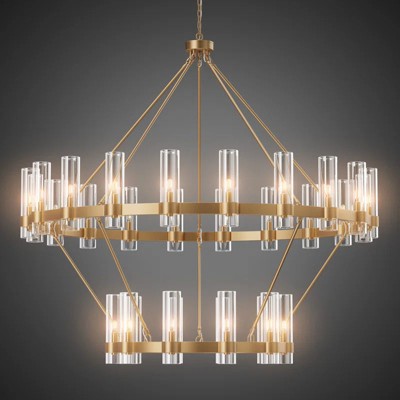 This 30-light double-layer wagon wheel chandelier combines classic farmhouse charm with modern craftsmanship. Featuring clear glass shades, precise metal construction, and a striking two-tier design, it serves as a stunning focal point for large spaces like dining rooms, living rooms, and foyers.