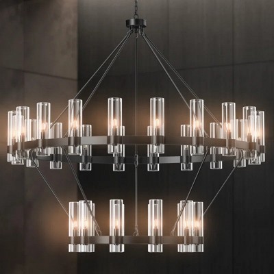 This 30-light double-layer wagon wheel chandelier combines classic farmhouse charm with modern craftsmanship. Featuring clear glass shades, precise metal construction, and a striking two-tier design, it serves as a stunning focal point for large spaces like dining rooms, living rooms, and foyers.
