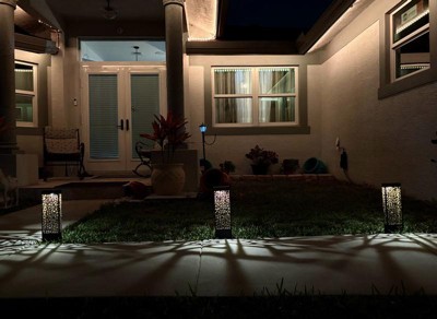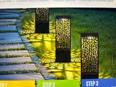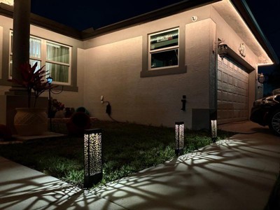 [This review was collected as part of a promotion.] I received this product complimentary for honest review. The Westinghouse LES Solar Path Lights are absolutely stunning. These are pretty tall for path lights. The unique cutouts leaves a beautiful design on your path or grass. These are 30 Lumens and are pretty bright. I love that they are solar powered. It is so easy to keep them charged without batteries. this model has two color options. One is color changing. It has multiple bright colors. They look so nice. The second is a standard white. The white is stunning. It really stands out. One downside is you have to manually change the mode. You take the top off of each light and move a switch. I would love to see these app powered. It would make it much faster. The material is pretty sturdy as well. If you hit them over they could dent. If you place them in sturdy they should last. The steak is easy to plant and they are very firm when placed. These have really made a nice addition to our fenced area