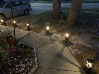 [This review was collected as part of a promotion.] These solar lights add such a nice touch to my walkway. The installation was extremely easy and I want to purchase more of them when I get a chance to. They light up my walkway really great!