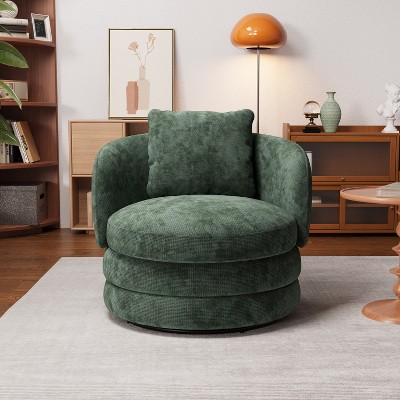 30'' Round Swivel Barrel Chair with 360-Degree Rotation, Ergonomic Chenille Upholstery and No-Assembly Design for Dynamic Living Spaces