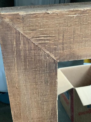 Tasteful and intelligent design best describes the Garvey Wall Mirror. The smart looking solid wood frame is made even sturdier by a hollowed-out constructed back which gives the look of a heavy, thick frame but is light enough to hang using only the installed D-rings. Use it in a bathroom for a functional decorative effect over a vanity or as an impressive piece of wall art over a bed. It's large enough to impress but small enough to work in many spaces. Hang it in an entrance hall, over a bench or couch, in the dining room, etc. A well-placed, attractive mirror, like the Garvey Wall Mirror, creates harmony and pulls a room together as it reflects the space. The distressed wood frame border is 4 inches wide and 1.5 inches deep. The overall dimensions are 36 x 30 inches and the inner mirror is 22 x 28 inches.