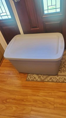 A: Hi Aylah! The 30 Gal. Storage Tote is made of Polypropylene plastic, and was designed for general household storage. Most household storage purposes do not require suggested weight limitations. Our products have not been specifically tested for various weight potential, and we suggest consumers not overload them or stack more than three high. This could cause distortion or eventual damage. When storing items away, use good judgment and be mindful of the weight in each tote and place the heaviest tote on the bottom.