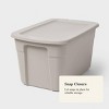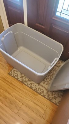 A: The storage tote has a capacity of 30 gallons, making it suitable for various storage needs.