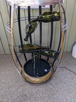 [This review was collected as part of a promotion.] This indoor metal wine barrel table fountain is so cool! It is nicely crafted with metal and glass construction with a table top. The water flow through the wine bottles is very relaxing. This is so simple to set up and is nice for any room. I have already had so many compliments on this fountain. This fountain would make a nice gift also. I am very pleased with this.