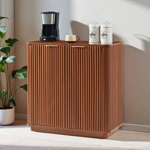 31.5" Buffet Sideboard Cabinet, Curved Wave Design, Adjustable Shelf, Oak Finish