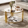 31.5" Glass-Top Drum Coffee Table with Gold Base
