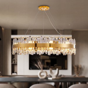This modern crystal chandelier, made of high-quality metal and transparent k9 crystal, is very unique and luxury. The k9 crystals are unevenly surrounded by the metal frame, creating a colorful lighting under the refraction of light. Sparkling and dazzling, illuminating the entire room in all directions, adding a touch of luxury and elegance to the room.
