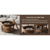 - This versatile piece (31.5" L x 31.5" W x 21.25" H) features a unique flip-top lid design. Simply lift the tabletop with both hands (like opening a chest) to reveal a deep, enclosed storage compartment, perfect for stowing blankets, board games, or magazines out of sight.