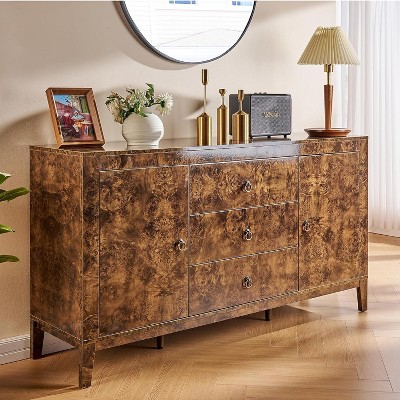 31.5" Sideboard Buffet Cabinet with Storage, Farmhouse Kitchen Wooden Cabinet with 2 Open Shelves, Gorgeous Burl Texture