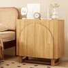 Add a touch of natural elegance to your home with the Koiai Small Storage Cabinet, a versatile and stylish solution for any space. Designed with a fully wooden appearance, this cabinet is crafted from composite panels to create an eco-friendly and organic aesthetic. The fan-shaped large board design offers a modern, symmetrical look while eliminating the need for traditional handles—simply push to open for effortless access.
