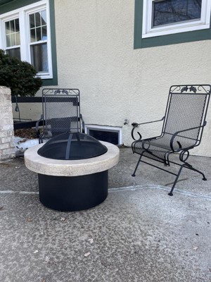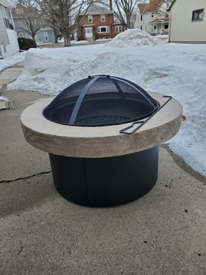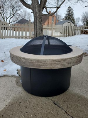 32" Stack Stone Wood Burning Outdoor Fireplace with Spark Screen - Threshold™: Heat-Resistant Steel, Round Shape