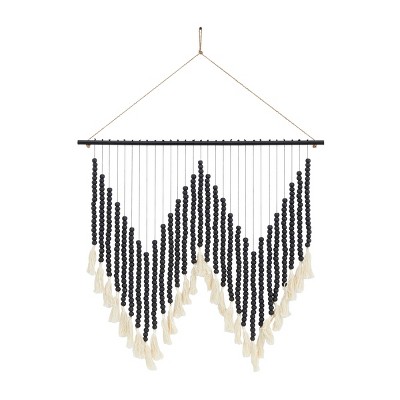 32" x 28" Cotton Macrame Handmade Intricately Weaved Wall Decor with Beaded Fringe Tassels - Olivia & May