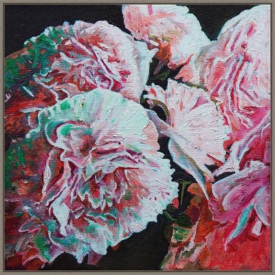 FRAME DETAILS: The canvas is framed in the Sylvie Graywash frame, which is a modern, float frame with Graywash woodgrain coloring and dramatic depth. The frame measures 1 in. wide and stands 2 in. off the wall. The canvas appears as if it is floating in the frame because it has a narrow gap between the edge of the canvas and the frame. The overall size of this framed canvas print measures 32 in. W x 42 in. H.