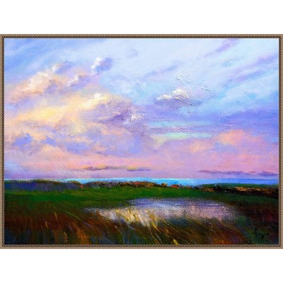 - FRAME DETAILS: The canvas is framed in the Sylvie Beaded Bronze frame, which is a vintage float frame featuring a traditionally beaded ornate design with light bronze coloring, subtle antiquing and dramatic depth. The frame measures 1 in. wide and stands 2 in. off the wall. The canvas appears as if it is floating in the frame because it has a narrow gap between the edge of the canvas and the frame. The overall size of this framed canvas print measures 32 in. W x 42 in. H.