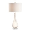 Brighten your interior with this ultra chic table lamp with a gorgeous contemporary teardrop silhouette. Blown from glass with a champagne tint, the finished design is both playful and classic Finished in a matching finial and silk-wrapped cord, elegance is in the details. The designer touches extend to all the way to the plug -- the 60 cord is silk-wrapped. The shade is made from faux silk. On-off rotary switch on socket. Eco-friendly 9W LED bulb included. Takes one bulb and compatible with any 12W LED or 100W TYPE A or 23W CFL. UL Listed. Before cleaning any lamp shade or fixture, disconnect the power source. Wipe with a soft, dry cloth. Avoid the use of chemicals and household cleaners as they may damage the finish.