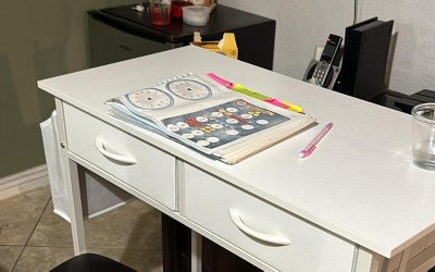 Love this desk! It is perfect for my daughter’s room for a study space. It was easy to put together- my 8 year old daughter assembled most of it! The mushroom stool also at Target, fits perfectly underneath.