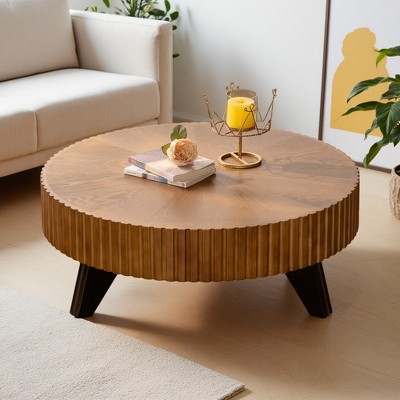 D32x16.5" CRound Coffee Table with Curved Legs and Brown Ash Veneer Finish