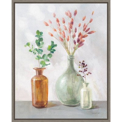 FRAME DETAILS: The canvas is framed in the Sylvie graywash frame, which is a modern, float frame with graywash woodgrain coloring and dramatic depth. The frame measures 1 in. wide and stands 2 in. off the wall. The canvas appears as if it is floating in the frame because it has a narrow gap between the edge of the canvas and the frame. The overall size of this framed canvas print measures 33 in. W x 23 in. H.