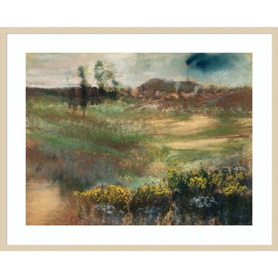 33" x 41" Hollyhocks and Path by Richard H. Fox Wood Framed Wall Art Print - Amanti Art: Modern Lithograph, Botanical Theme