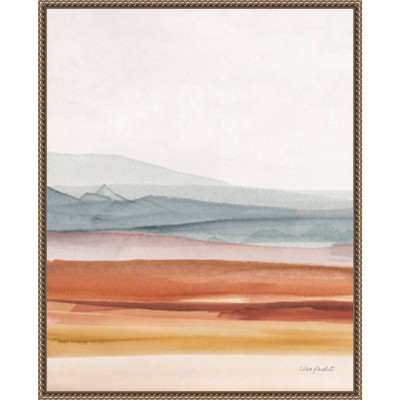The warm foreground of this abstract painting feels like a desert with cool, blue mountains rising in the distance. A strong use of color creates depth as you decide what landscape you want to see. This Amanti Art canvas art print was created by Lisa Audit and printed by Amanti Art in Madison WI. The canvas is stretched by hand and finished with a float frame. Individually made using traditional custom framing techniques, it has the quality you would expect from your local frame shop. Because of our attention to detail and focus on artistry, architects, interior designers, and homeowners alike choose this framed canvas artwork to create beautiful living spaces.