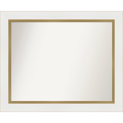 33"x27" Non-Beveled Cottage Wood Bathroom Wall Mirror White/Silver - Amanti Art: Modern Rectangular Design, Wall Mounted, Wood Frame