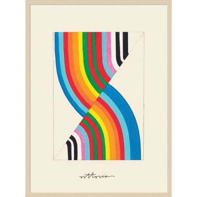 This fun, bright, and playful painting features a unique view of a colorful personality. At first glance, two unconventional blue rainbows appear to intersect, but closer inspection reveals the tiny details that outline the body of woman adorned in the boldest colors. This Amanti Art framed art print was created by Amber Vittoria and printed by Amanti Art in Madison WI. The print is giclee printed using fade-resistant inks for picture-perfect detail and incredible depth of color and finished with a 100% real wood frame. Individually made using traditional custom framing techniques, it has the quality you would expect from your local frame shop. Because of our attention to detail and focus on artistry, architects, interior designers, and homeowners alike choose this framed art print to create beautiful living spaces.