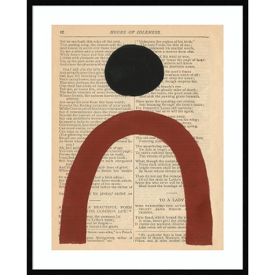 This painting features text from the narrative poem, Childe Harolds Pilgrimage in the background. Superimposed over this text is a terracotta semi-circular shape and a thickened black arc. This Amanti Art framed art print was created by Renee W. Stramel and printed by Amanti Art in Madison WI. The print is giclee printed using fade-resistant inks for picture-perfect detail and incredible depth of color and finished with a 100% real wood frame. Individually made using traditional custom framing techniques, it has the quality you would expect from your local frame shop. Because of our attention to detail and focus on artistry, architects, interior designers, and homeowners alike choose this framed art print to create beautiful living spaces.