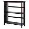 Classic style meets parallel fortitude. The Mission Style 3-Shelf Bookcase provides all the storage space you need with grace. The broad shelf design allows for ample room to bring all of your design ideas to life. Made of solid wood for lasting beauty and structural integrity. Light and easy assembly. Wall mount hardware provided. Product dim: 29.5"W x 11.75"D x 34"H. Weight capacity: 25lbs per shelf.