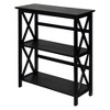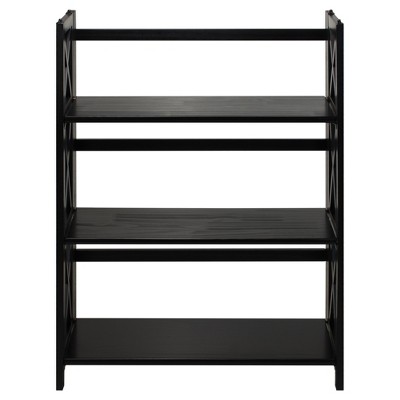 Storage with ease, this Montego X-Design Style Bookcase is constructed with solid wood for lasting use. 3 shelves provide ample storage space. A thorough finish gives this bookcase a strong, contemporary appearance. Perfect for home storage and decor. Light and easy assembly. Wall mount hardware provided. Product dim: 29.5"W x 11.75"D x 34"H. Weight capacity: 25lbs per shelf.