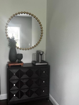 [This review was collected as part of a promotion.] This Marlowe beaded round wall mirror is amazing. This is very high quality and heavy duty. This definitely adds to the aesthetic of my living room area, and it goes with all my decor. This is a stylish piece and something I will use for years. I like how big it is and the gold color is great. The mirror is definitely something I recommend for anyone who wants something stylish in their house or business. The mirror will go with just about any design.