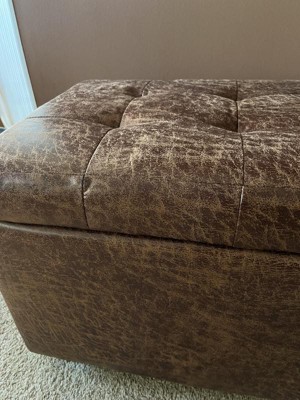 The color and look of it are nice. Quality is awful. The box was damaged and product when arrived. Small hole..ok not a huge deal, but the bottom of this ottoman is basically cardboard. I'm afraid to put anything in it besides blankets. Lid does not shut completely either. I guess you get what you pay for on this one.