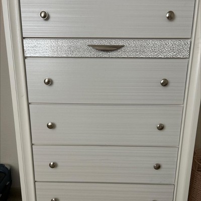 Acme Furniture 34" Naima Chest White: 5-Drawer Wood Vertical Dresser, Metal Glides, No Assembly Required