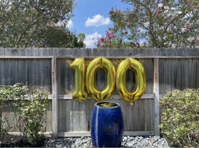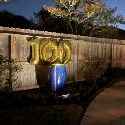 These Balloon Numbers are nearly a yard tall, so they really make a statement! They were easy to blow up with the included straws and easy to tie to pushpins on our fence to display them. The included string had gold stripes on it, which didn’t really show from any distance, but it was a festive touch! Despite rain and wind they still looked good days later, and really looked great at night with just the pool lights on. A lot of bang for your buck!