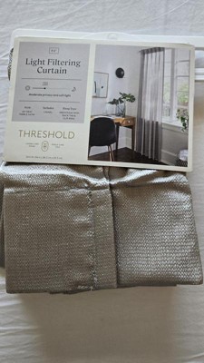 I recently tried the THRESHOLD 84" Light Filtering Curtain in Jet Gray Pebble Satin. These curtains have been a fantastic addition to my living room, offering both style and functionality. The jet gray pebble satin finish adds a touch of elegance to my space. The texture is smooth and luxurious, making the curtains look much more expensive than they are. They drape beautifully and create a soft, inviting atmosphere. The light filtering feature allows natural light to flow into the room while still providing a level of privacy, which is exactly what I was looking for. The fabric is of good quality and feels durable. After several weeks of use, there are no signs of fading or wear, even with the sun shining through them daily. The stitching is neat, and the curtains hang perfectly without any puckering. Installing these curtains was a breeze. They come with a standard rod pocket design that fits easily onto my curtain rod. The 84" length is perfect for my windows, providing a nice floor length that enhances the overall look. I would highly recommend the THRESHOLD 84" Light Filtering Curtains in Jet Gray Pebble Satin to anyone looking to upgrade their window treatments. They combine style, quality, and affordability, making them a great addition to any home. Nevertheless, these curtains have certainly elevated my living room decor!