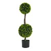 34" Artificial Topiary Boxwood Tree Double Ball with Pot, Set of 2