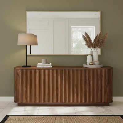 34" Sideboard Buffet Cabinet, Wood Entryway Coffee Bar Cabinet, Fluted Floor Cupboard with Adjustable Shelves, Media Console Table for Living Room