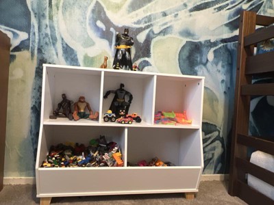 We love this toy storage and let our son decorate himself. Plenty of space for all his toys of odd sizes and even for him to display his favorite dinos. We got collapsible bins (seperate purchase) that we can put into the cubby as well. Easily accessible for our 5 yr old to take his toys out and put them back.