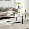 - Perfect addition to any living room; this circular marble top coffee table is designed for use in front of any couch or television