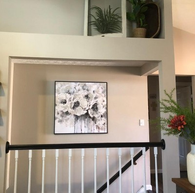 This painting was perfect for my living room. It has really beautiful colors and is made so well I've had people ask me who painted it because even up close it looks like a real painting. It has a lot of different taupes and grays in the painting with a hint of blue.