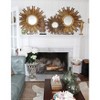 This gold wood sunburst wall mirror adds sparkle and warmth to the home. This wall mirror is glamorous and bold, showcasing a gilded wood frame in an intricate sunburst design. The gilded wood frame has a gold finish that adds contrast and elegance to the wall, while the sunburst design adds some interest and dimension. The mirror's round shape reflects some light and opens up the space. This wall mirror is ideal for adding sparkle and warmth to any living space, such as a living room, bedroom, or hallway. Hang it on its own or as part of a gallery wall. This wall mirror comes with hanging mechanisms for easy installation. It measures 35.5 inches in diameter, making it a perfect size for any space. This mirror is a stunning piece that will add a touch of sophistication to any home.