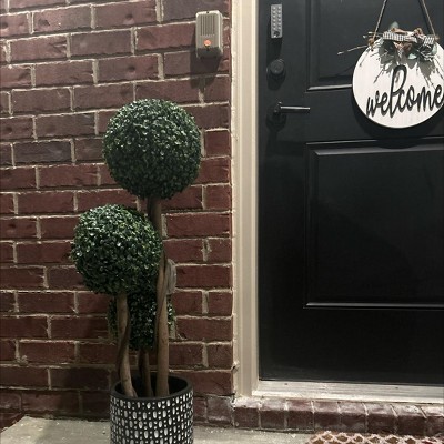35 Inch Artificial Topiary Ball Tree, Faux 3 Ball Boxwood Topiary Tree in Pot, Faux Shrubs Green Plant, Artificial Plant for Home Decor